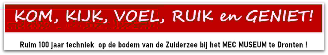 Het Mechanisch Erfgoed Centrum aan de Dronterweg in Dronten. Een museum met een grote diversiteit. U zult letterlijk van alles tegenkomen, van historische verbrandingsmotoren, stoommachines en locomotieven tot naaimachines, speelgoed, oude gereedschappen en een grote collectie landbouwwerktuigen! Op de open dagen worden er motoren en machines opgestart, de derde zaterdag van de maand is het stoomdag op het museum, (uitgezonderd de wintermaanden) dan zijn diverse stoommachines onder stoom te bewonderen. In de zomermaanden is er een bijensafari.