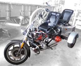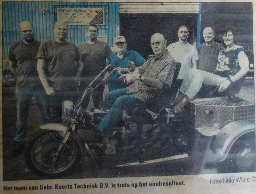 Twee jaar lang, zeven dagen in de week, hebben vrienden Paul Koeter (60) en Ad de Laat (69) aan hun Trike gebouwd. Door zijn MS en parkinson kon Paul niet langer zijn hobby uitoefenen: klassieke motorfietsen restaureren. Nu is zijn zelfgebouwde voertuig, mede dankzij Ad en de hulp van Gebr. Koerts Techniek B.V. helemaal af.