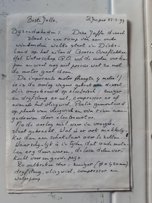 Deze onderdelen hebben nog lang naast de motor gelegen en zijn uiteindelijk buiten de molen opgeslagen. Het gemaal heeft intussen een meer eigentijdse aandrijving gekregen. Om de oude JAFFA motor als industrieel erfgoed te bewaren, werd de motor geschonken door het Waterschap Dirksland Zuid-Holland aan het Machinemuseum te Zwolle. Bijgaande foto’s geven een beeld van het ontmantelen van de motor en de opstelling in Zwolle