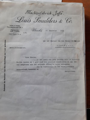 De motor is volgens de motorplaat gebouwd in 1912 bij de fabriek Louis Smulders & Co, beter bekend als JAFFA Utrecht. De drie onafhankelijke fabrieken Smulders ontstaan indirect (vóór 1860) uit één kleine machinefabriek te Tilburg en direct uit één dito, opgerichte ca. 1860 te ’s-Hertogenbosch, welke ongeveer in 1872 verplaatst werd naar Utrecht, splitsten zij zich in den loop der tijden in de drie firma’s.