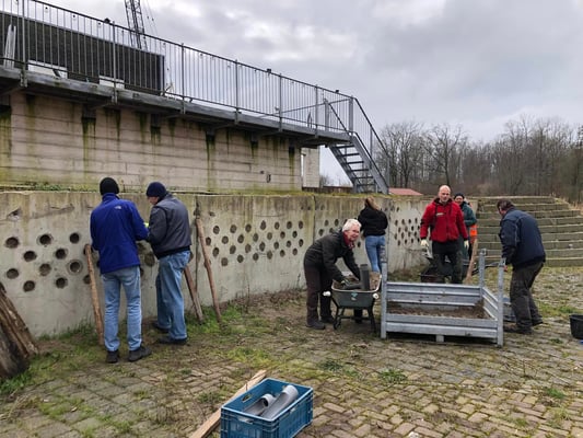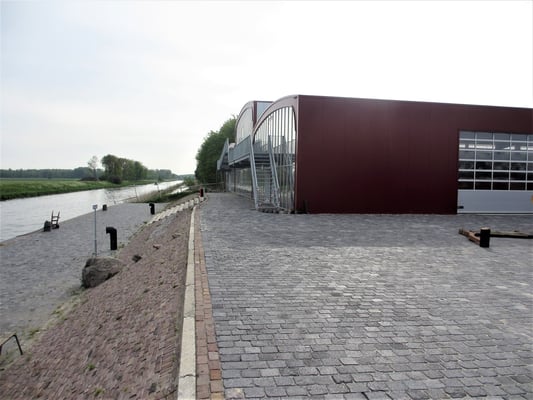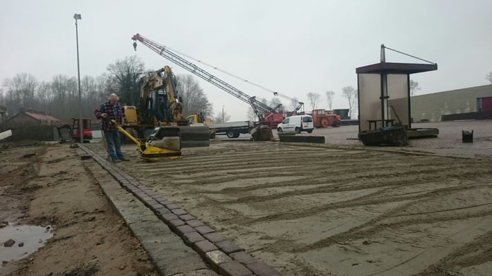 Het hele terrein is bestraat met historische klinkers en met koperslakkeien. Koperslakkeien zijn kleur- en slijtvast, zodat onze stoomwalsen er zonder problemen over kunnen rijden.